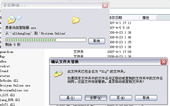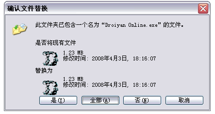 第九步:在确认文件替换和确认文件夹替换时都点“全部”,图片如下:
