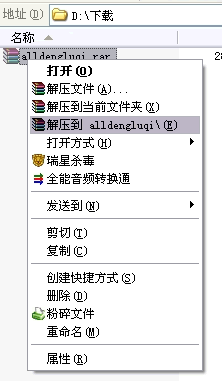 第二步:右击alldengluqi.rar,然后点“解压到 alldengluqi\(E)”,图片如下: