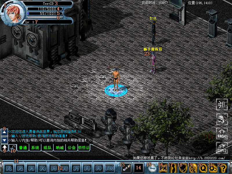 16:PK按扭,按下此按扭后,可攻击警备兵或其他玩家。