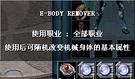 使用后能够随机变更机械身体的基本属性,必须是镶嵌满四个锆石的机械身体才能进行变更,如果变更失败,机械身体会伴随消失